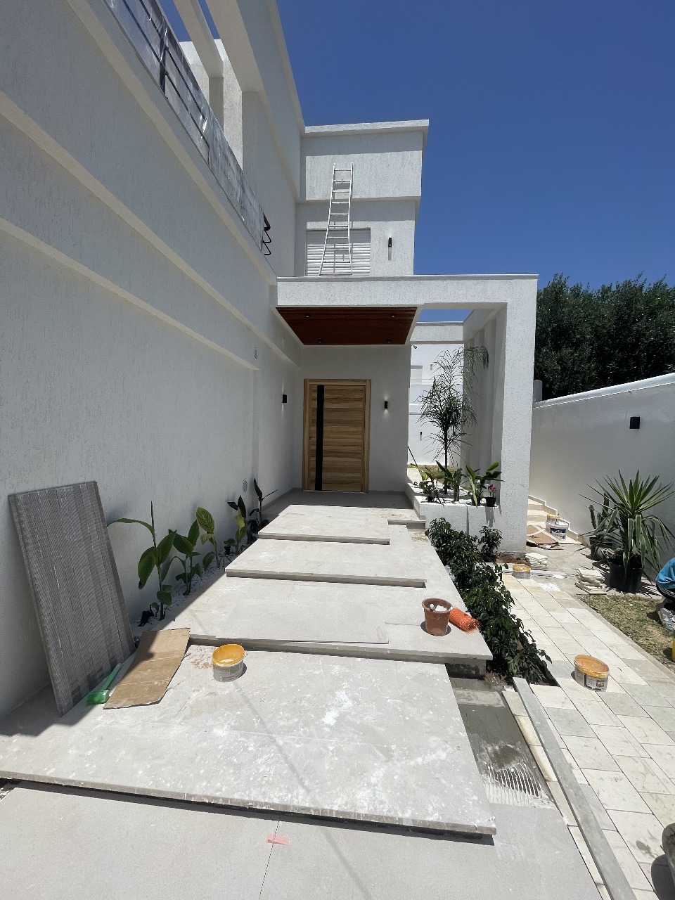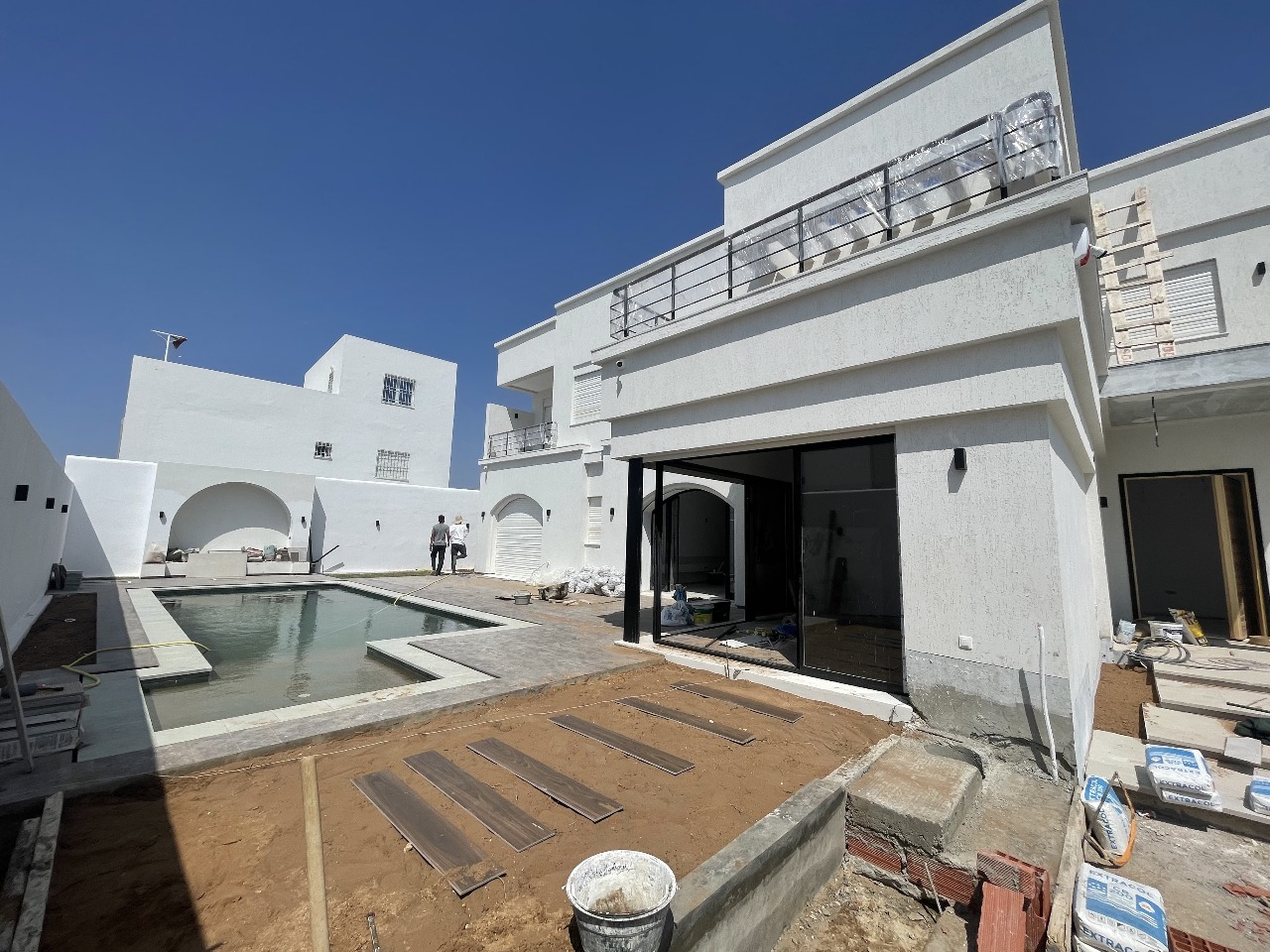 Une demeure prestigieuse où chaque détail reflète le haut de gamme : marbre, verre et acier se marient dans une architecture contemporaine, avec une grande piscine à débordement et un jardin zen.
